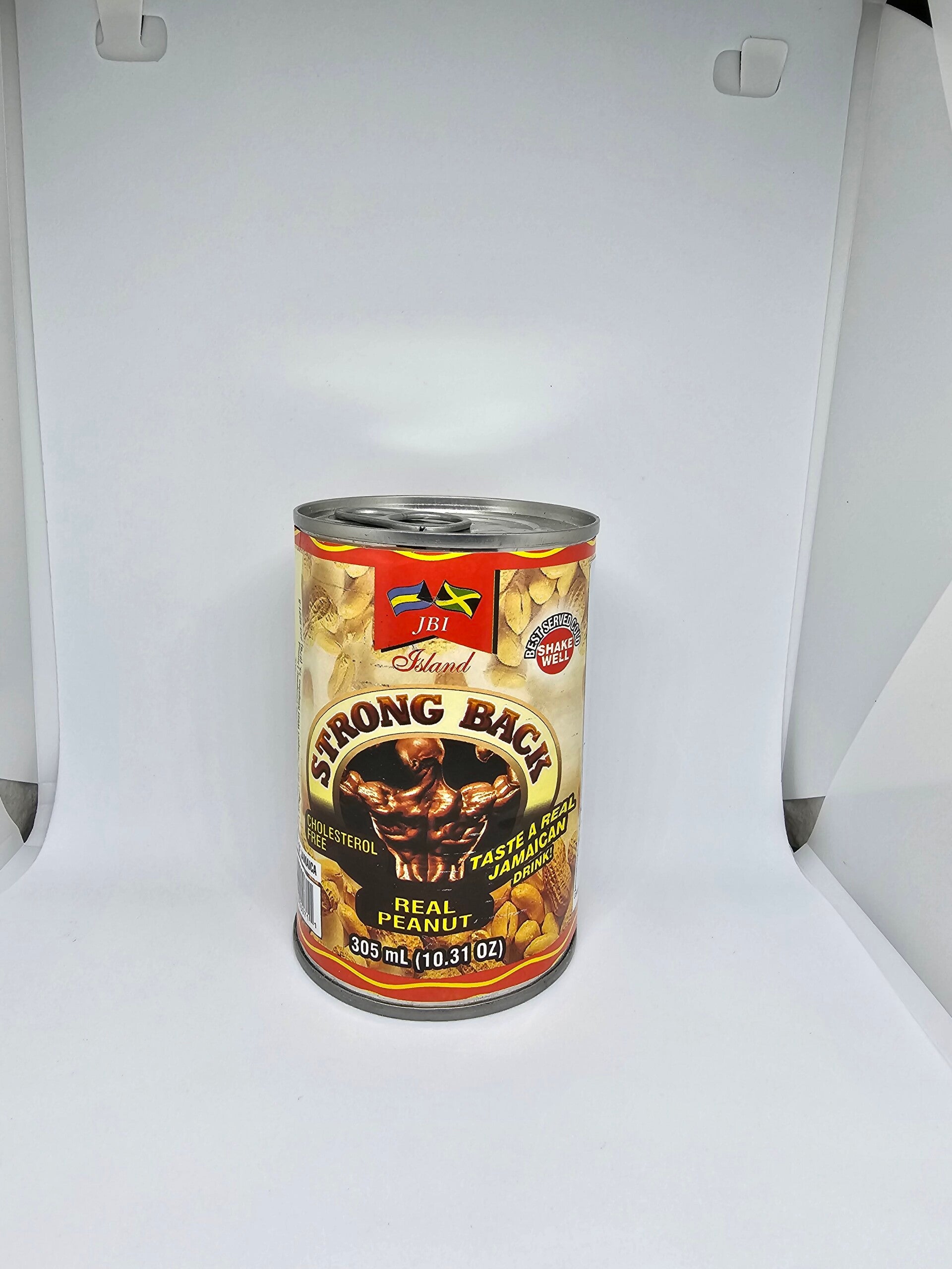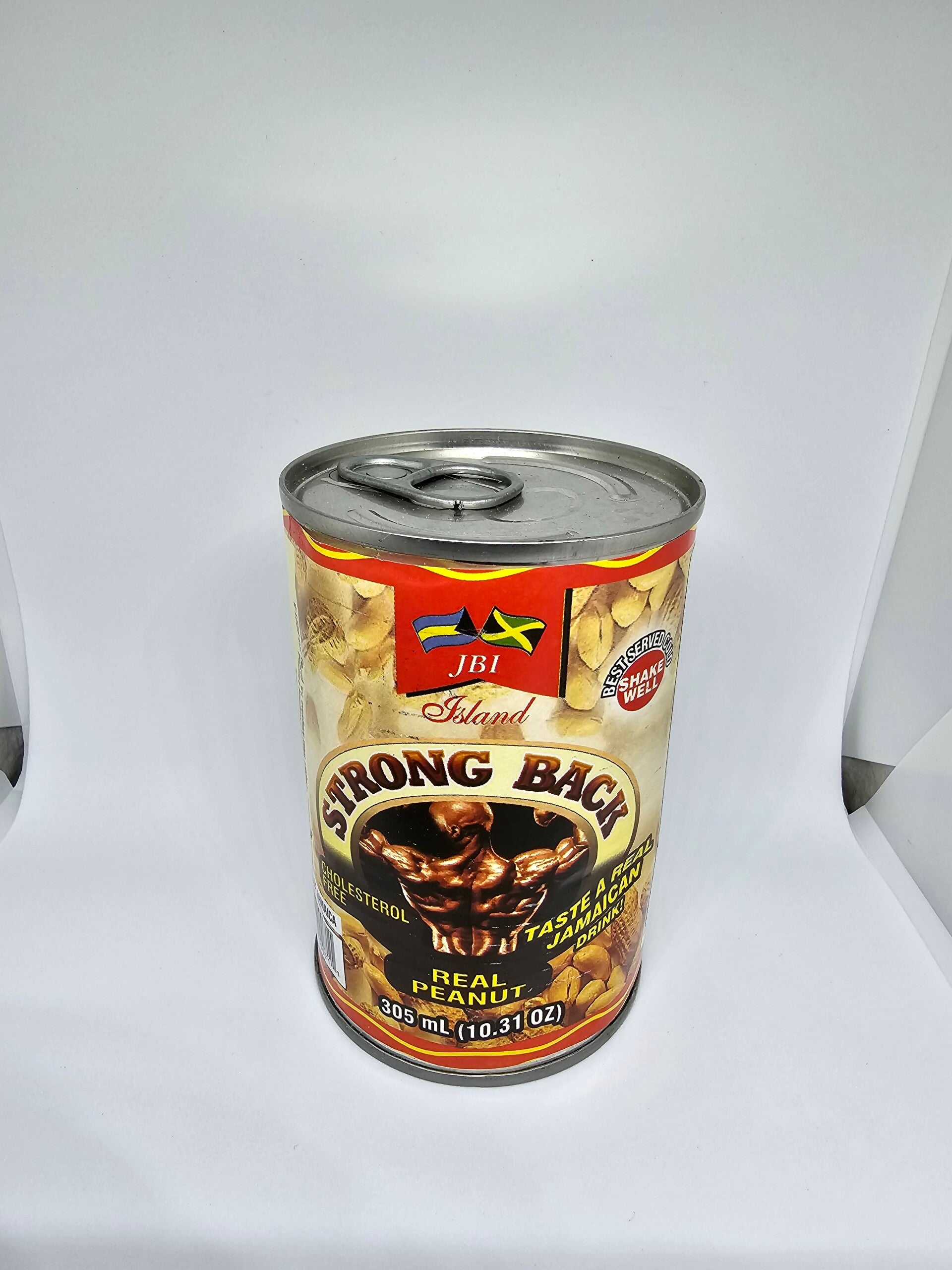 JAMAICAN STRONG BACK CHOLESTEROL FREE REAL PEANUT TAST A REAL JAMAICAN DRINK