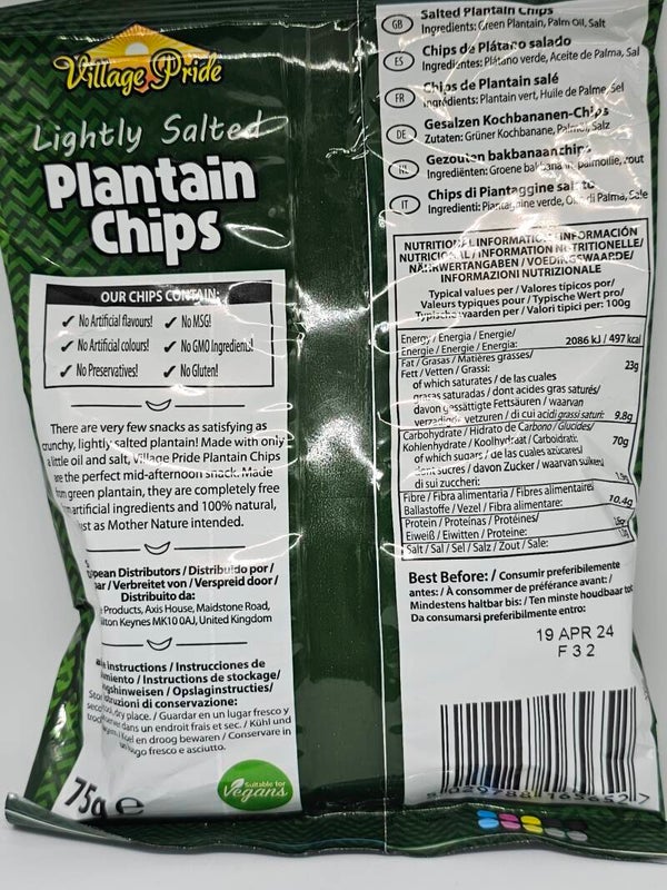 VILLAGE PRIDE 100%NATURAL PLANTAIN CHIPS LIGHTLY SALTED 75g