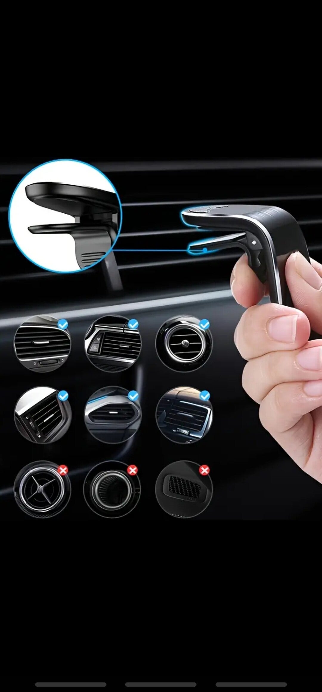 L Shape Magnetic Phone Holder For Car Magnet Cellphone Bracket BLACK