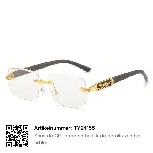 1PC Heren Gepersonaliseerde Cheetah Metal Temple Design Rimless Zonnebril, Geschikt Voor Casual Retro Kleding