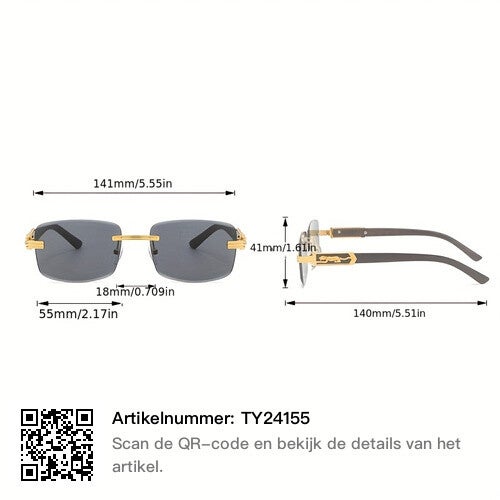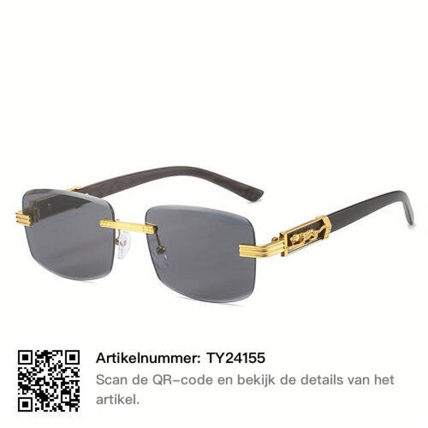 1PC Heren Gepersonaliseerde Cheetah Metal Temple Design Rimless Zonnebril, Geschikt Voor Casual Retro Kleding