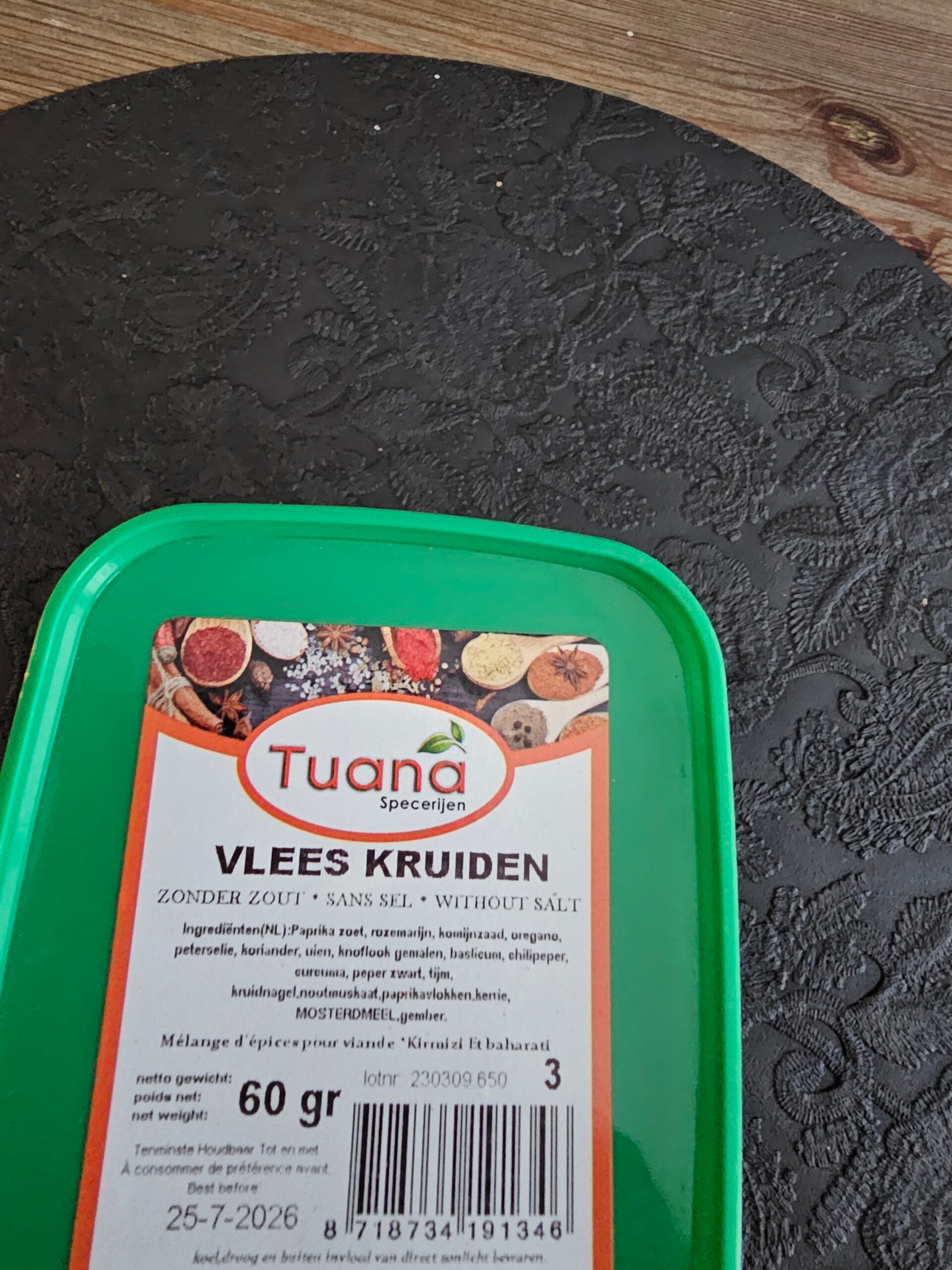 VLEES KRUIDEN 60gr ZONDER ZOUT WITHOUT SALT HOUDBAARHEID 12-3-2027