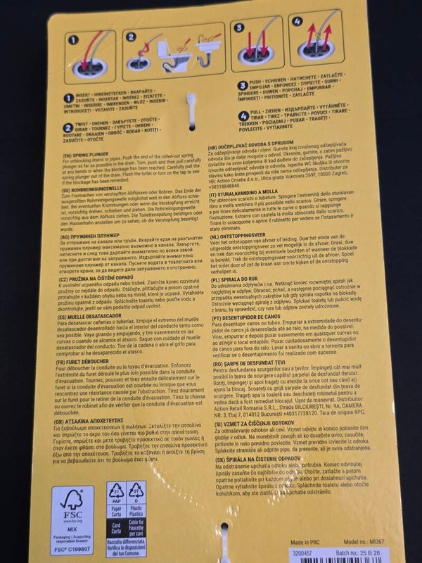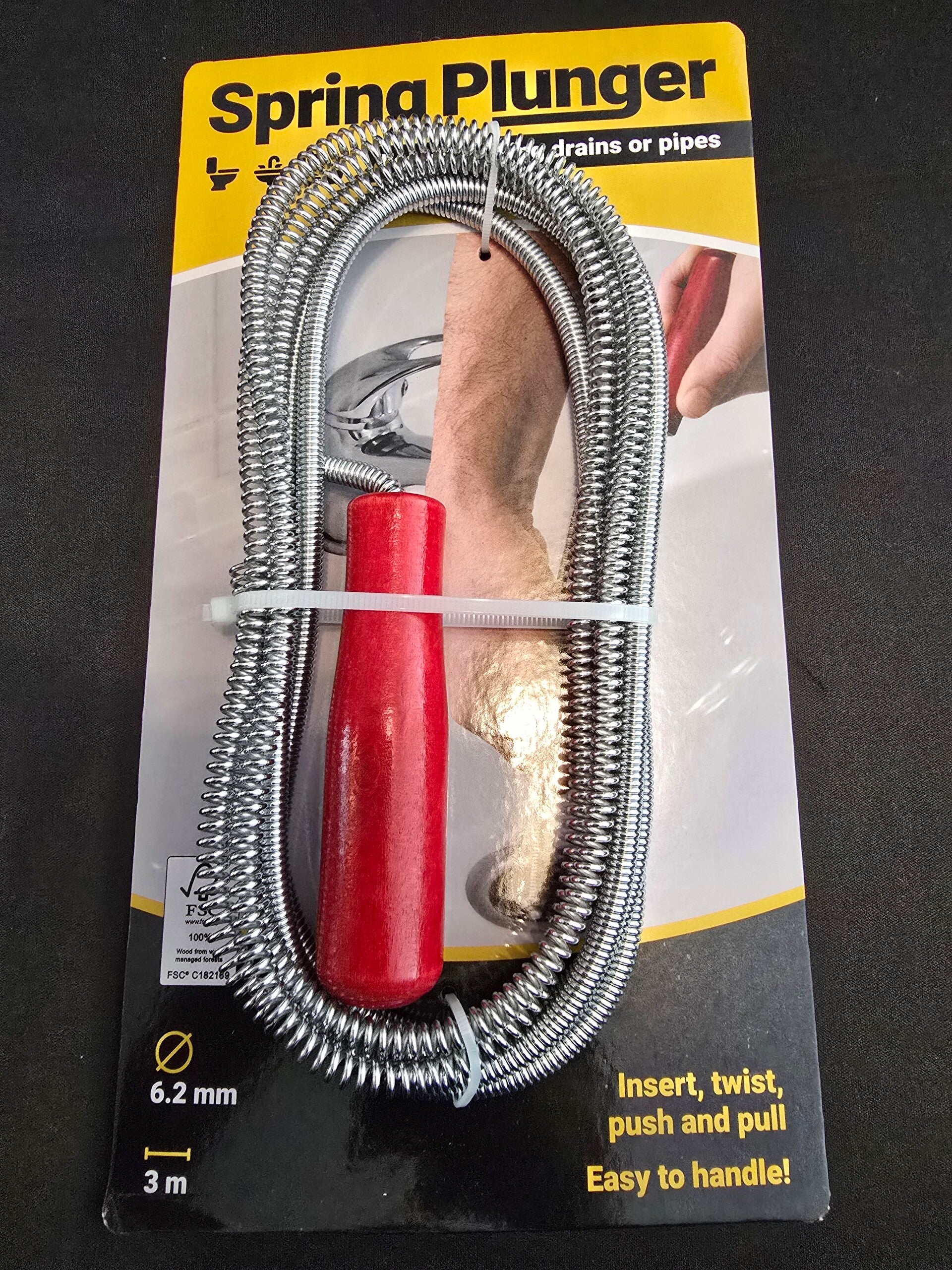 SPRING PLUNGER FOR UNBLOCKING DRAINS OR PIPES 6.2 mm round 3m lang