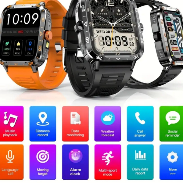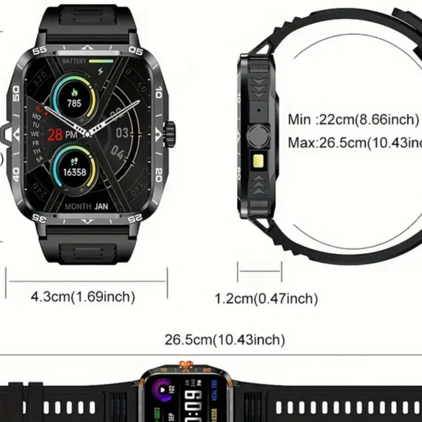 1.95-inch Smart Watch met LED-zaklamp, compatibel met Android en iPhone, 100+ sportmodi, aangepaste gezichten, stapcounter, afstandsmetingen, waterdicht, USB-oplading, draadloos 5.1, TFT-display, polymer-lithiumbatterij 300mA