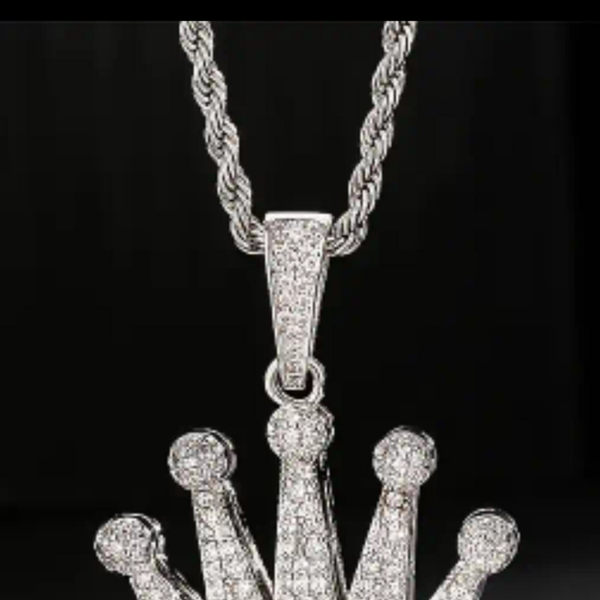 1st Kroon Hip Hop Hanger PLUS Ketting, Hip Hop Kroon Ketting Cadeau COMPLEET SET silver